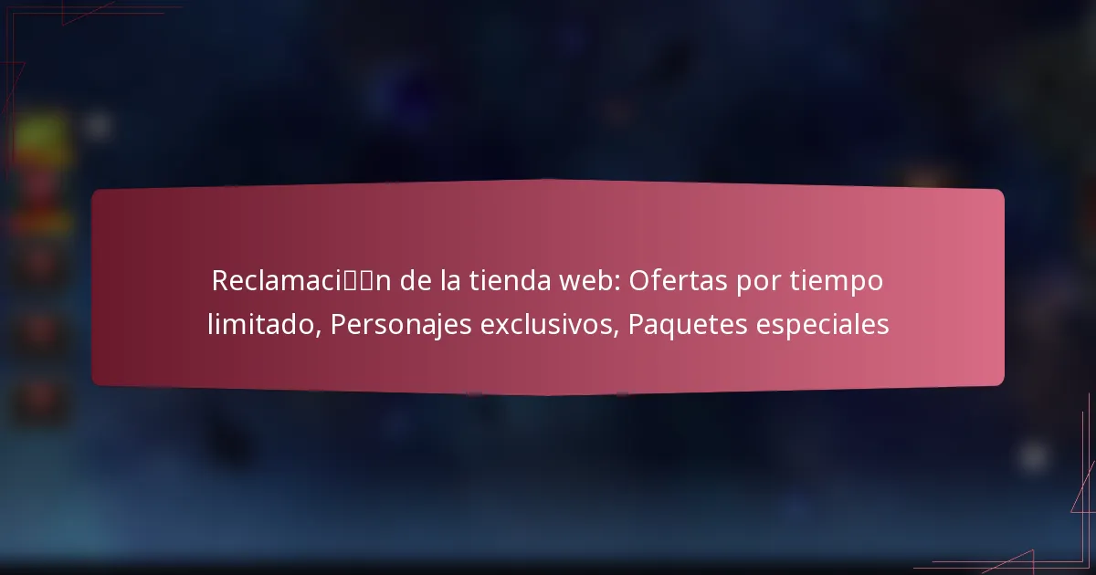 Reclamación de la tienda web: Ofertas por tiempo limitado, Personajes exclusivos, Paquetes especiales